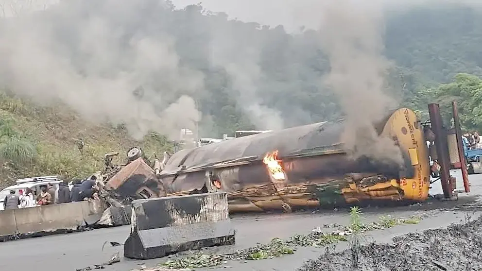 Otra cisterna sufre accidente, ahora en el kilómetro 104 de la carretera Cochabamba–Santa Cruz, donde el conductor perdió la vida tras quedar atrapado en el incendio; es el tercer hecho…
