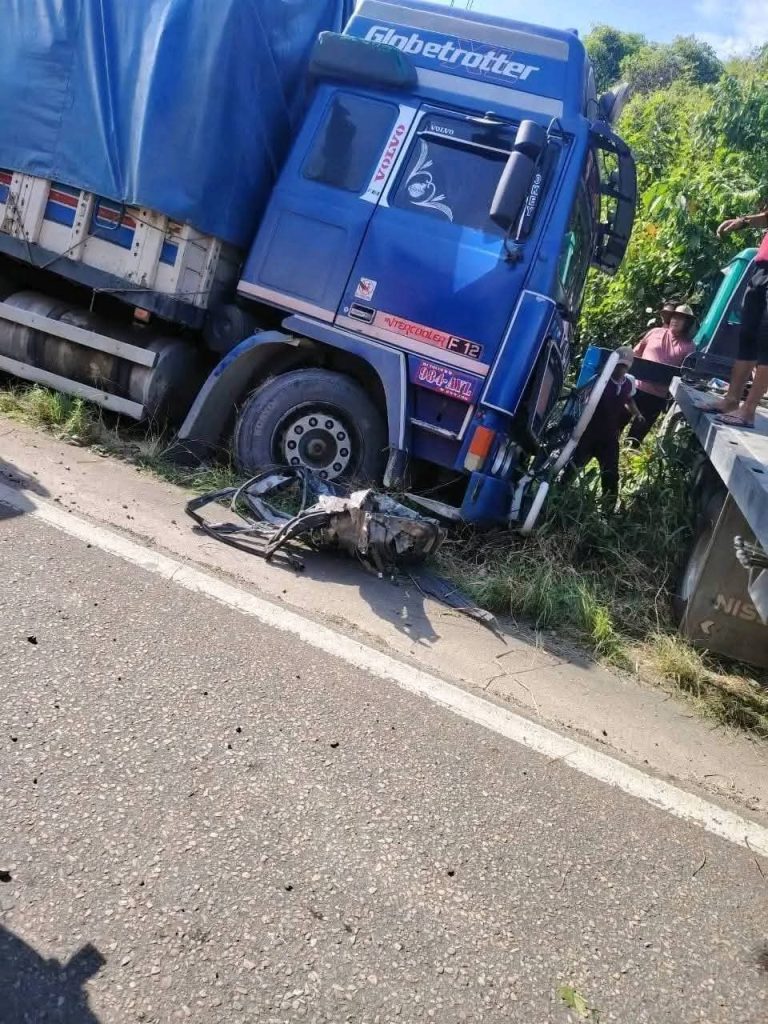 Debido a la fuerza del choque, el vehículo de alto tonelaje terminó arrastrando al otro motorizado para finalmente aplastarlo dentro de una cuneta a un lado de la carretera.
