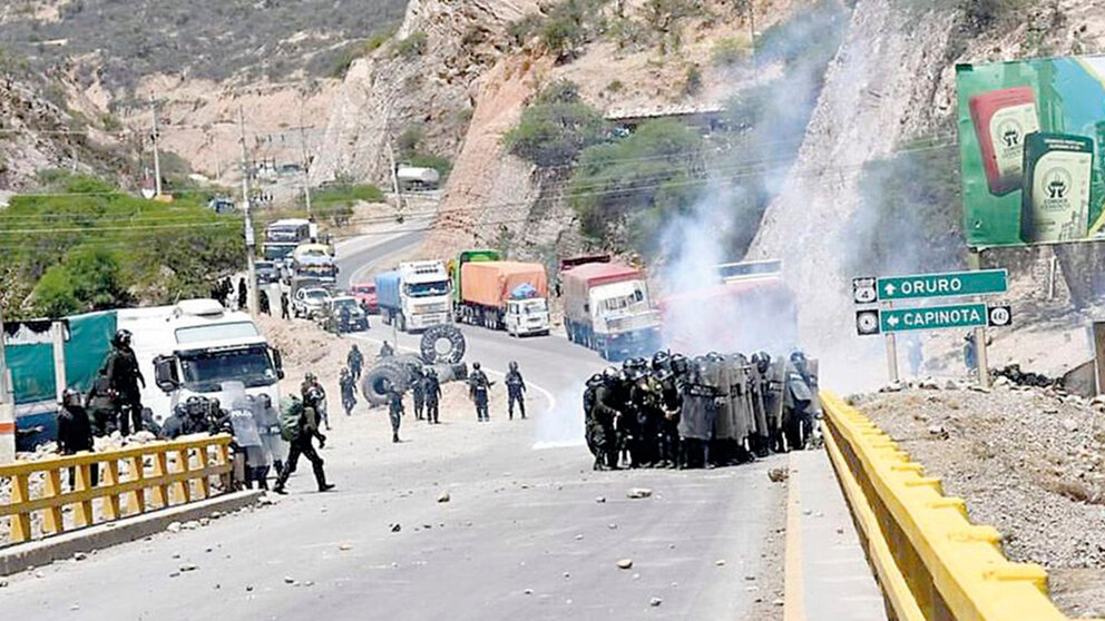 Se registraron enfrentamientos entre la Policía y bloqueadores en Capinota