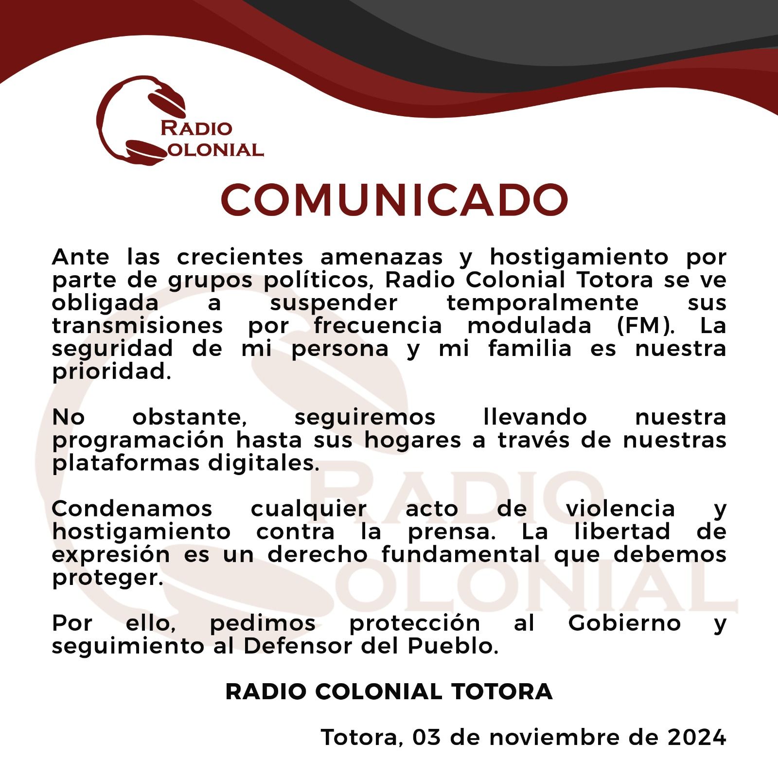“No podemos permitir que el miedo nos silencie, pero tampoco podemos poner en riesgo nuestras vidas”, señala un pronunciamiento de la emisora En medio del conflicto evista, la radio Colonial,…