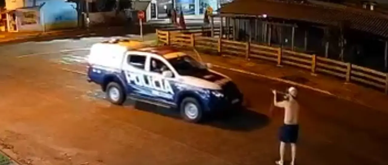 Tras la llegada de la patrulla policial, los amenaza con dispararle, pero en cuestión de segundos los efectivos, desde dentro del vehículo, lo abaten a tiros, dejándolo tendido en plena vía.